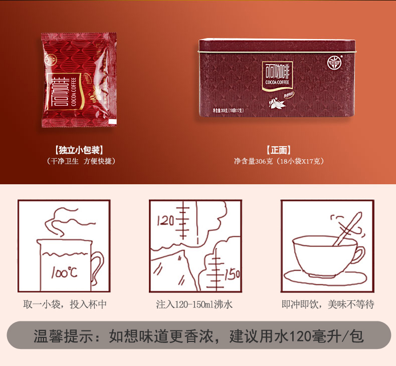 【兴隆热带植物园】¥67.9 --兴科精品可可咖啡306g/铁盒 -兴隆热带植物园- 速溶咖啡粉-正品