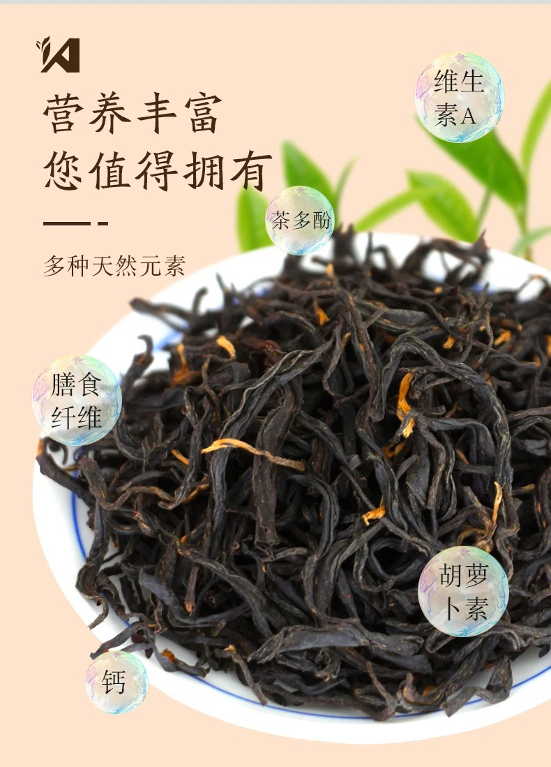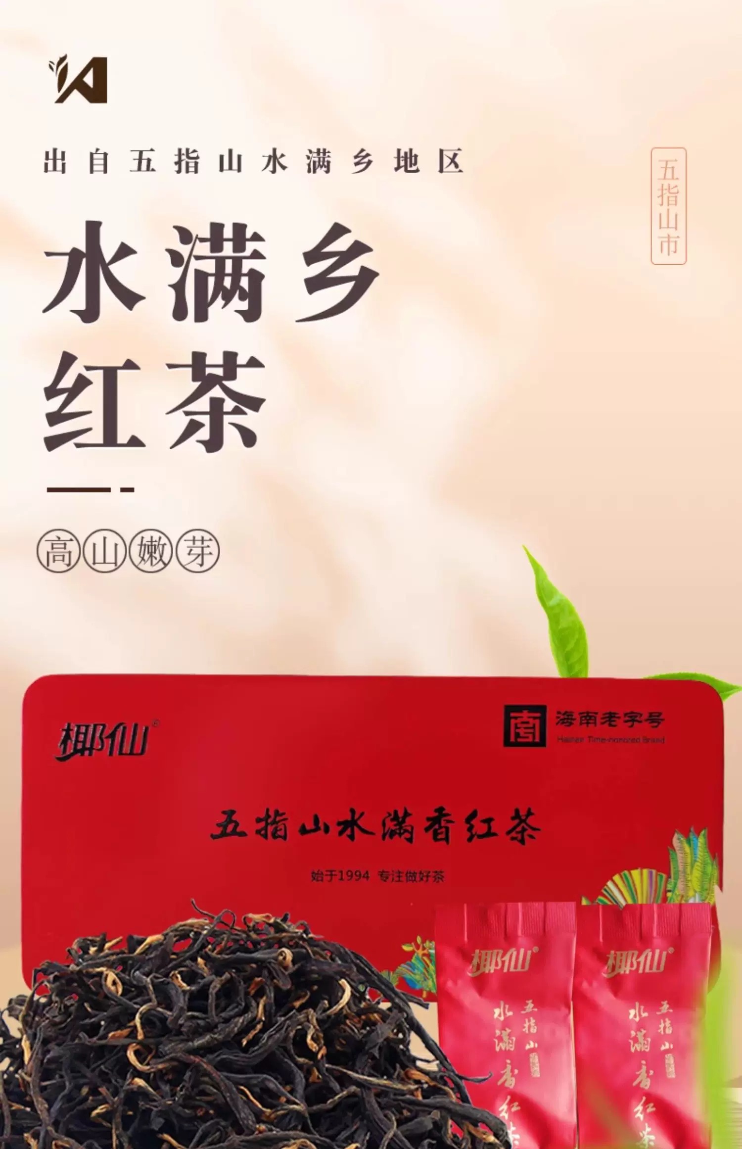 ¥128元/ 盒。五指山水满香红茶100g 精品盒装 海南椰仙特级大叶工夫红茶奶蜜香,5g*20包/盒!