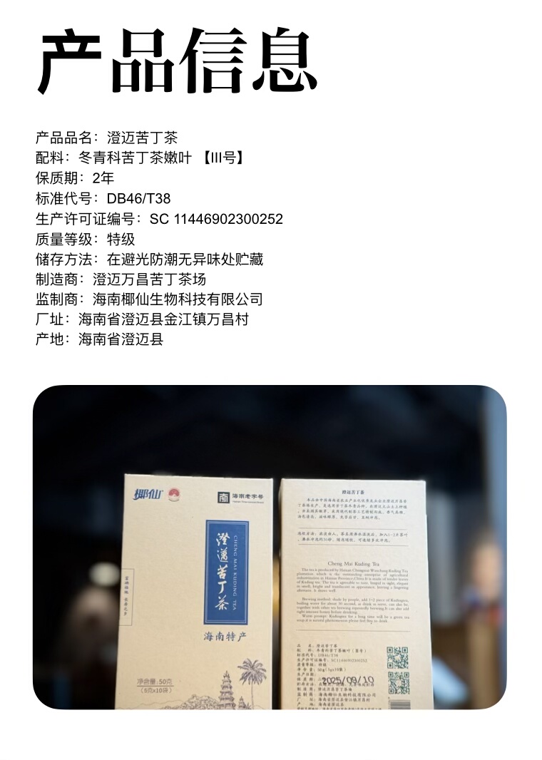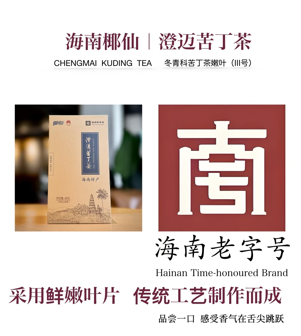 ¥68元!海南椰仙苦丁茶50g盒装 特级嫩叶III号茶 大叶冬青 澄迈万昌茶厂