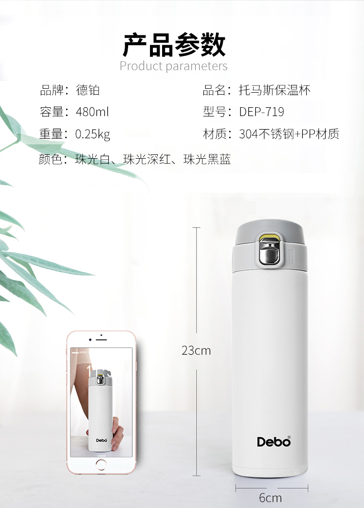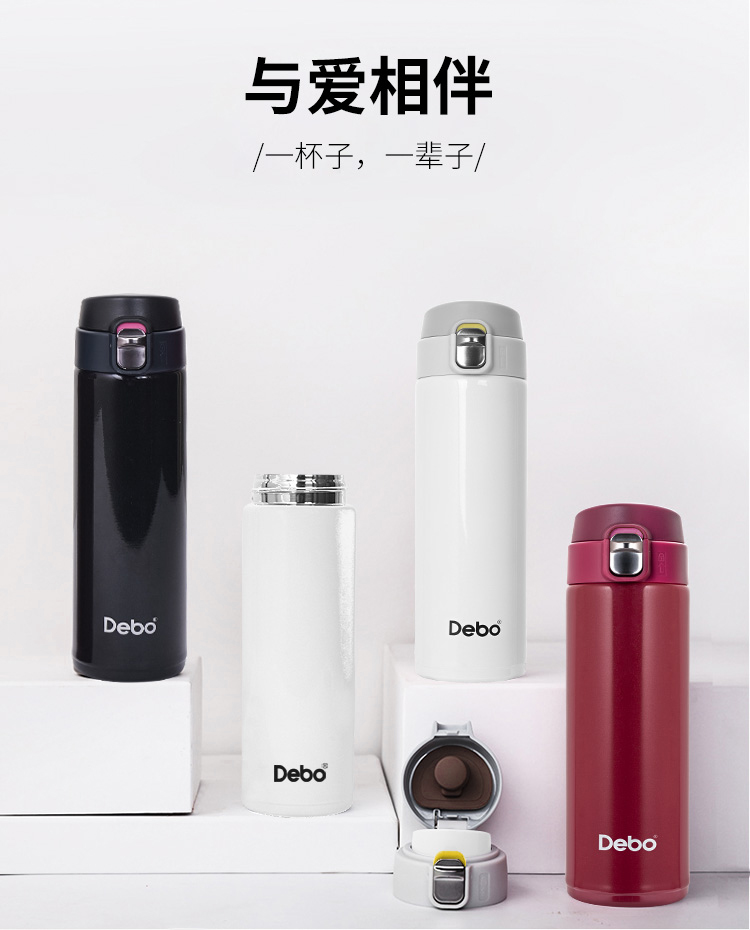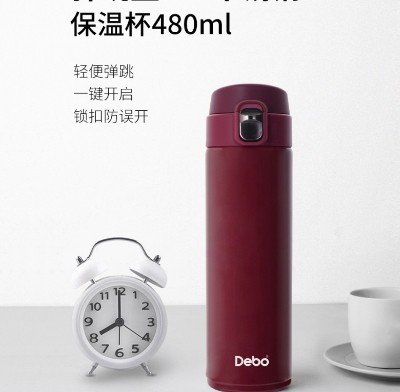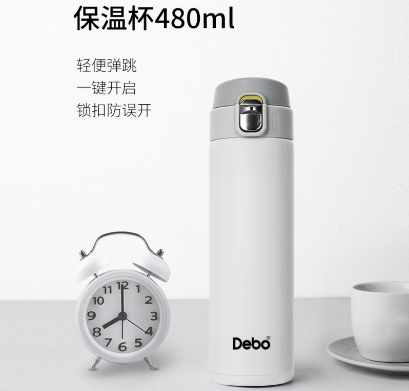 35元购德国Debo德铂 托马斯304不锈钢真空保温杯弹跳杯480ml 白色/红色