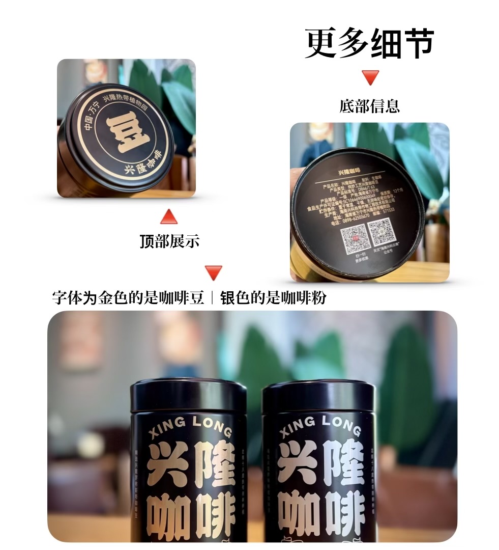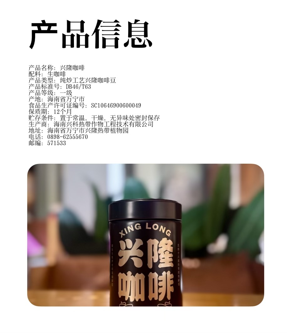 【兴隆热带植物园】¥198元!精品兴隆咖啡豆200g 兴隆热带植物园 香醇中度烘焙黑咖啡手冲正品
