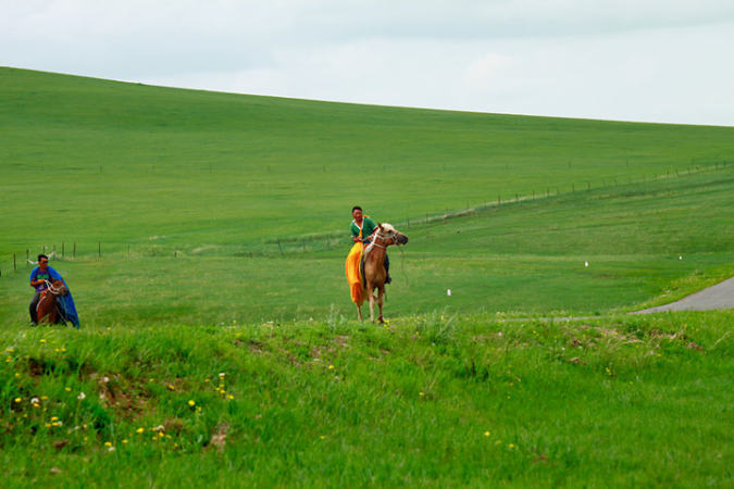 一路的风光无限,我们抵达黑山头草原体验骑马。黑山头草原是呼伦贝尔草原典型的代表:平坦如茵,一望千里!