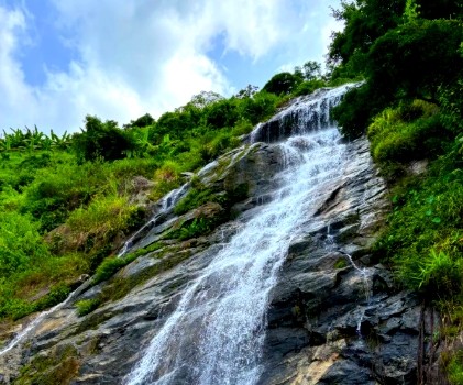 行程安排: 07:45滨海大道海口海关路口(海口体育馆对面)上车出发 08:00中国城路口出发前往屯昌竹林村 11:00午餐品屯昌特色美食香草鸭 12:00前往琼中百花岭瀑布 16:30返程回海口各上车点 每周六发班 报名费:159元/人 20人成团发班 百花岭大瀑布总体落差超过300米,是亚洲落差最大雨林瀑布之一,号称“亚洲雨林第一瀑”。百花岭更是汇聚了雨林、飞瀑、温泉、湖泊、溪流、沟谷、奇石、黎苗村寨、梯田、古寺等各类人文与自然和谐交融,以动、静、形、韵、涵的奇、秀、险风格,成为海南中部生态景区中颇为神秘的世外桃源。