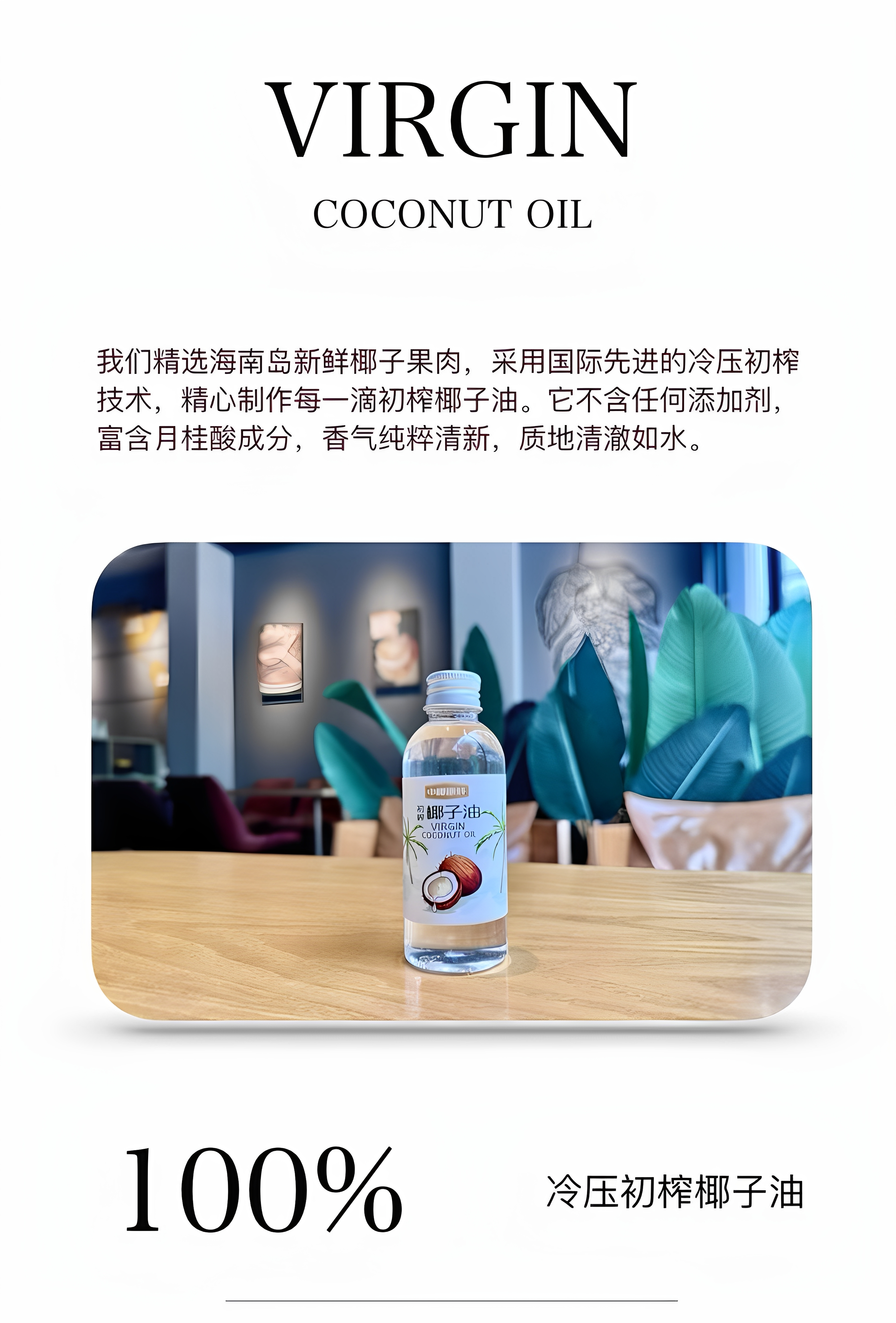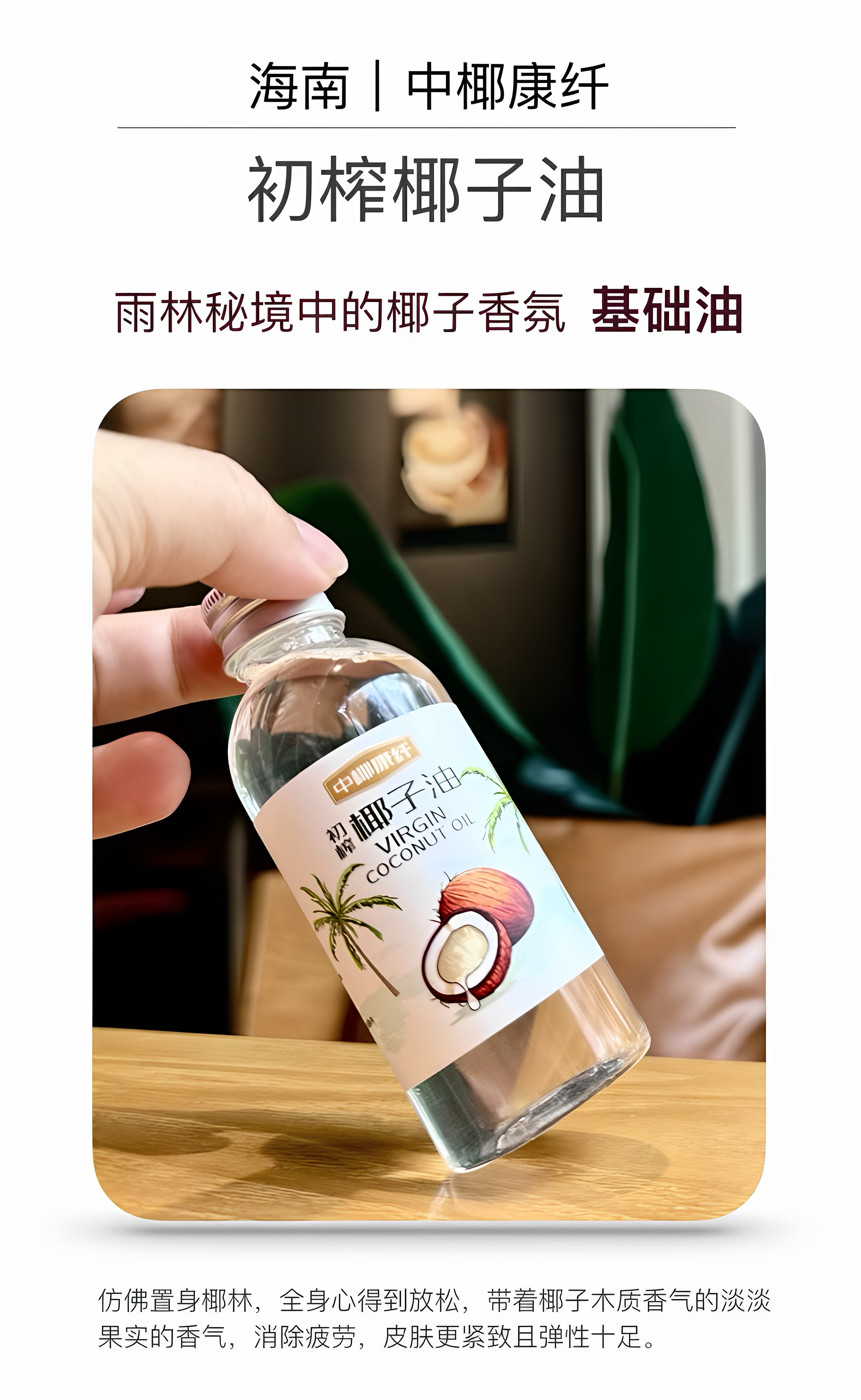 【3瓶起包邮】¥18元/瓶!海南初榨椰子油80ml基础油 100%椰肉冷压 护肤护发家具皮革保养