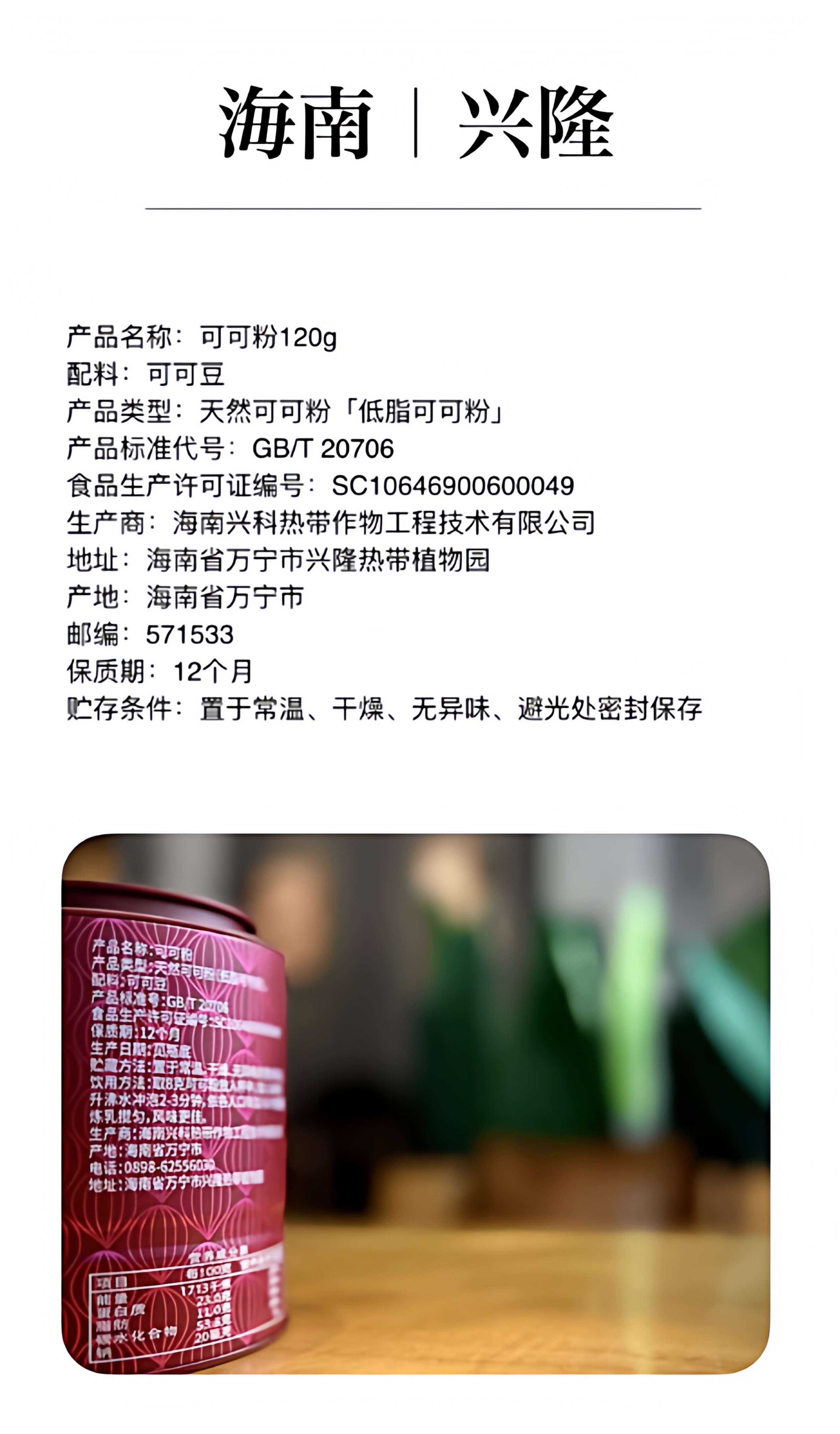 【兴隆热带植物园】¥48元/罐!海南天然可可粉120g 精品罐装 低可可脂 兴隆热带植物园官方直营