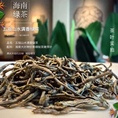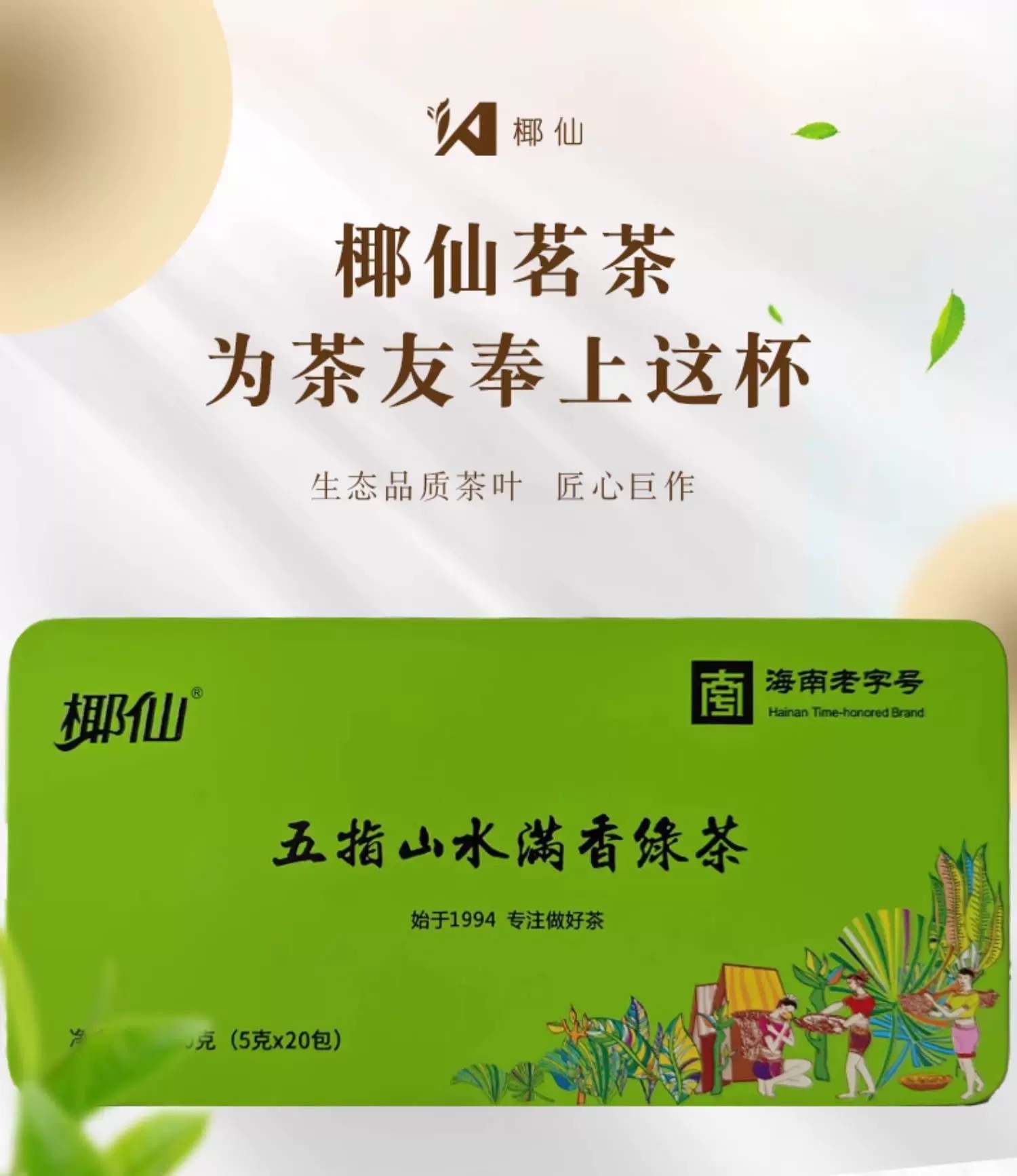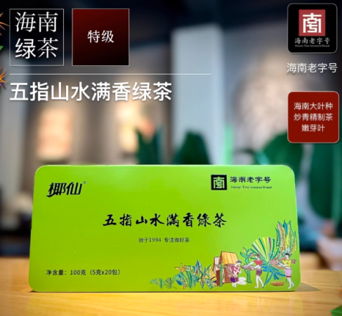 ¥128元!五指山水满香绿茶100g 精品盒装 海南椰仙 特级大叶种 炒青精制茶
