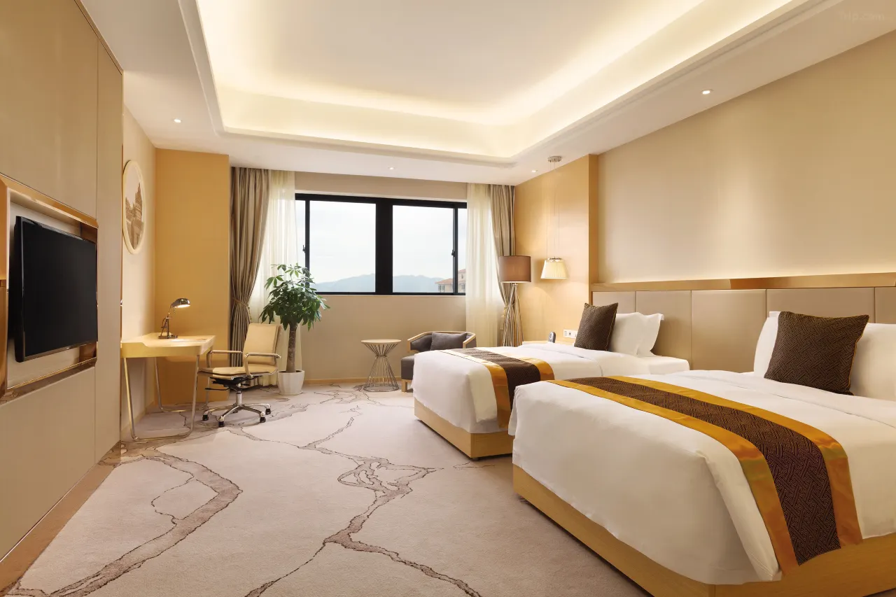 江门冬日紫色花海—邂逅百亩紫花风铃木海の新会大红柑(或冰糖沃柑)任摘任食(适时水果)、番禺余荫山房、广州珠江夜游5天 ★ 吃足6餐、《湛江白切鸡风味宴》《鱼翅汤底·新鲜牛肉火锅》、《姬松茸炖鸡汤·吊烧鸡·海南鸡瓦煲饭》、《广州茶点宴》;新会果园任摘任食适时水果; ★ 参观全新开平【不夜城景区】,粤西最大型夜景区之一; ★ 重本包大门票:新会大红柑园、珠江夜游、余荫山房。 ★ 乘广州有轨电车,打卡开往宫崎骏世界的7.7公里旅程。 国际温德姆酒店集团旗下-恩平华美达酒店 紫韵漫山,赴一场冬日风铃之约!绿美生态园位于广东江门新会区大泽镇莲塘村山头坪,是一个以紫花风铃木为主要观赏性植物的主题生态园,6000 株风铃花次第绽放,从浅紫到深紫的渐变花色,如打翻了调色盘般铺满山野。 余荫山房——岭南四大园林之一。