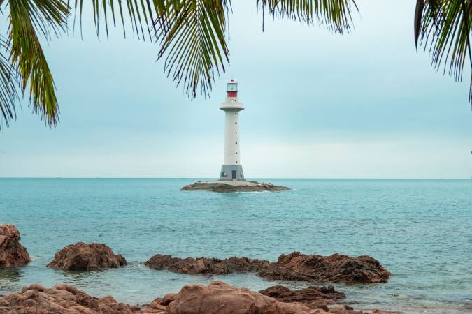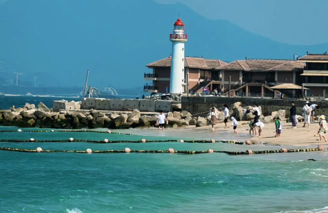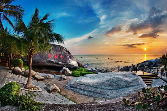 “寿”字碑,是慈禧太后的御笔,因字体细长,有“长长瘦瘦(寿寿)”寓意。据《崖州志》记载:慈禧太后在派遣王亘出任崖州知州时,在南山修建“同善堂”供奉慈禧“寿”碑,寓意“寿比南山,福寿延绵”。"同善堂"被毁后,原碑在1994年此重竖于大小洞天。 鹿回头风景区是眺望三亚美景的好地方,很多人都会在下午凉快的时候来到这里,一直等到夜晚,来欣赏夜迷离的三亚。 在鹿回头山上有很多观景台,登山山顶之后会发现,这里三面临海,眼下就是三亚的一座座高楼大厦和远处的点点帆船,似乎自己也置身于了海天之中。 当海面上夕阳缓缓褪去 夜幕渐渐降临鹿城 登顶鹿回头,登高望远 南湾花镇南湾花镇位于海南岛的南端,滨临大海、风景秀丽、气候宜人。园区内展出超过100余种三角梅花卉200余万株。置身花镇犹如置身花海。园内有山有水,三角梅树高低错落,部分三角梅树还配上了形状各异的趣石,让人浮想联翩。 园内的三角梅品种繁多,花色丰富,有红、橙、黄、白、紫等系列色泽及单瓣花、重瓣花和斑叶等多种。满树的花在蓝天青山的映衬下显得更加鲜艳,煞是好看。 海南分界洲岛旅游区,是中国首家海岛型国家5A级景区,位于海南岛的东南海面,坐拥热带原始岛屿特有的地貌和稀有的海洋生物资源。 站在山顶,分界洲岛周围海水清澈,与沙滩相衔接,构成了画家所不及的天然画卷。